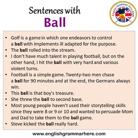 Sentence With Ball. Web keep using ball instead of bawl? The ball rolled into the stream.