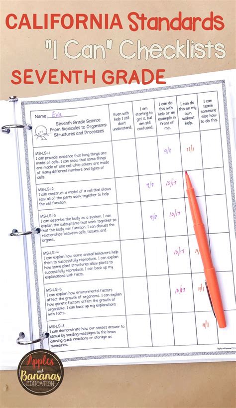 Seventh Grade "I Can" Standards Checklists for all core, California from www.pinterest.com
