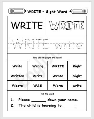 Web our sight word soup worksheets (fill in the missing letters) help a child learn sight words through a fun activity. On this worksheet, students will color the word, color the letters in the word, trace the word, and write the word in a sentence. Web this writing review activity works wonderfully alongside any other fry sight word activity.