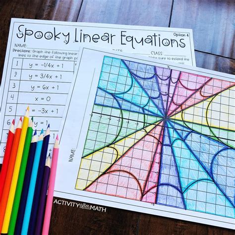 Spooky Linear Equations. This is a great differentiated lesson for your students to create spiderweb designs! It is easy to print the instructions on one side.