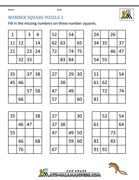 Welcome To The 2Nd Grade Math Salamanders Free Number Square Puzzles Page.