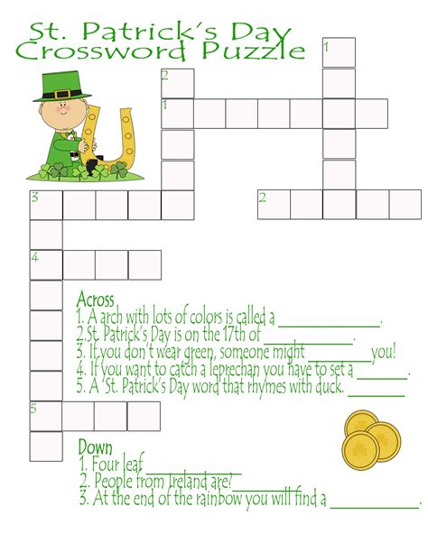 Patrick's Day Crossword Puzzles Are Fun For Kids And Adults And Are Great For A Holiday Unit.